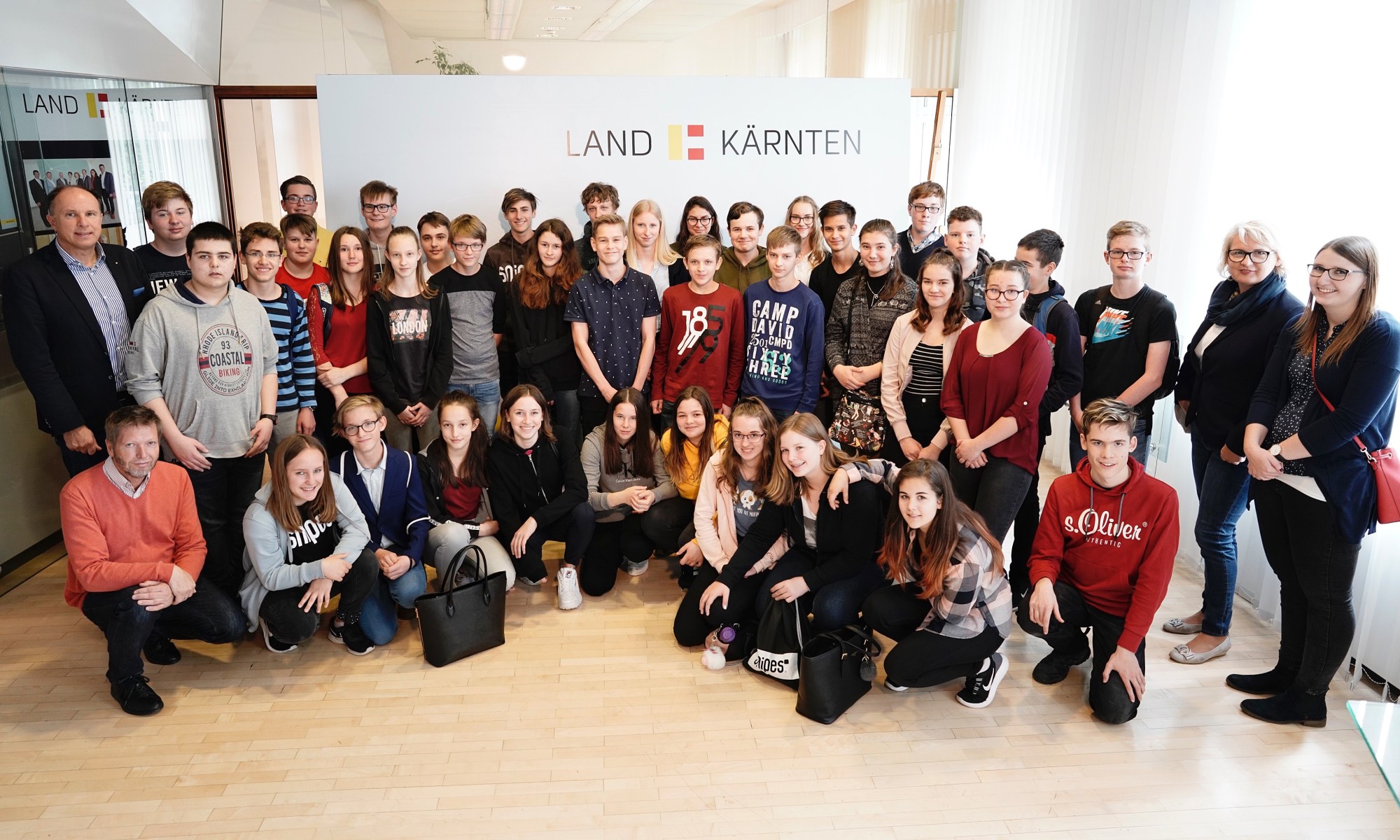 Am 14. Mai besuchten die 4. Klassen den Kärntner Landtag und das Regierungsgebäude der Kärntner Landesregierung am Arnulfplatz (Organisation Dipl.Päd. Walter Hofer). Der 1. Landtagspräsident Ing. Reinhart Rohr begrüßte unsere Jugendlichen und führte gemeinsam mit Frau Mag. Holzer durch Landtag-Sitzungssaal, Wappensaal, Koligsaal und Kleinen Wappensaal. Demokratiepolitische Begriffe wie Organisation, Ausschüsse und Präsidiale des Kärntner Landtages wurden dabei vermittelt.