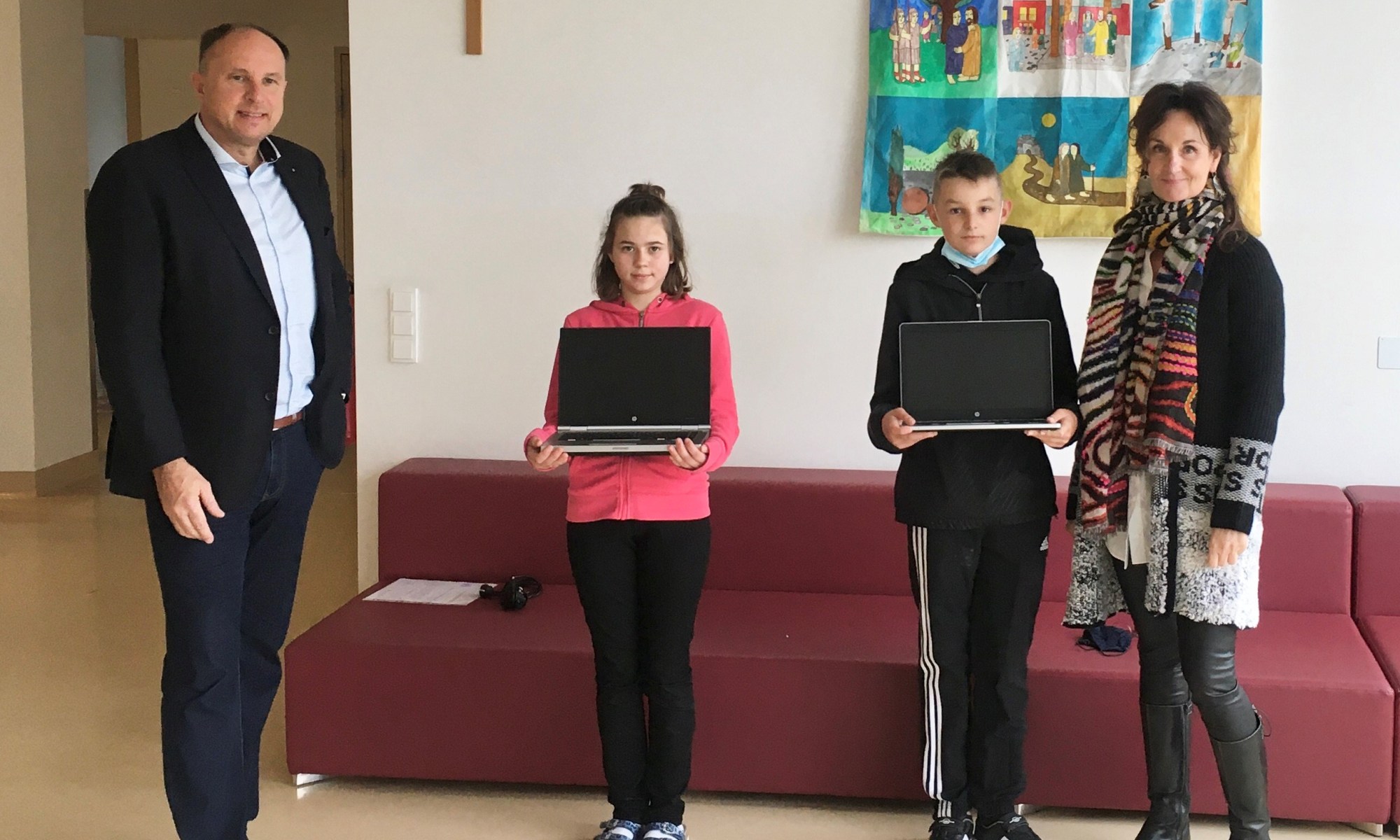 In zwei Tranchen übergab die Bildungsdirektion für Kärnten (repräs. von Dr. Florian Kandutsch) der Mittelschule Friesach Hemmaland in Summe 13 Laptops. Im Rahmen einer Erhebung zum „Distance Learning“ der Bildungsdirektion für Kärnten hatte die Schule im März vermerkt, dass einige Schüler/innen über kein entsprechendes Endgerät (Laptop, PC etc.) für ein adäquates Arbeiten unter den Rahmenbedingungen der Fernlehrsituation verfügen. Der Kärntner Wirtschaftsförderungsfonds (KWF) hat sich dankenswerterweise bereit erklärt, diesen Bedarf durch eine großzügige Spende in Form von Laptops zu decken.