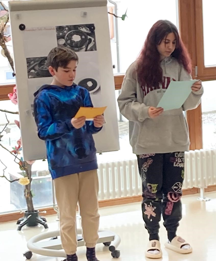 Fotos: (c) MS Friesach, 2023 – In einer eindrucksvollen Präsentation stellten die Schüler/innen der DaZ-Gruppe (Deutsch als Zweitsprache) ihr Land, Persönlichkeiten aus dem Sport sowie kulinarische Köstlichkeiten des Landes in deutscher Sprache vor. Vorbereitet und durchgeführt wurde die für die Schule integrative Maßnahme von den beiden Pädagog//innen Alina BILGERI und Konstantin HAUER.