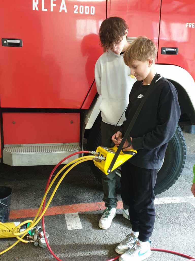 Fotos (c) MS Friesach, 2023 – Kürzlich wurden die Schüler/innen der 3a-Klasse der Mittelschule Friesach Hemmaland (Klassenvorstand Mag. Julia Funk, Dipl. Päd. Martina Freissegger) von der Freiwilligen Feuerwehr Friesach mit einem MTF vor dem Schulzentrum abgeholt und zum Rüsthaus gebracht. Dort lernten die Kinder die Aufgaben „Löschen, Schützen, Bergen, Retten“ kennen. Weiters wurden verschiedene Löschmethoden, Arbeitsmittel und Ausrüstungen besprochen. In einem Praxisteil durften sie sogar Feuerwehrschläuche und Hebekissen ausprobieren. Zum Abschluss gab es eine gemeinschaftliche Jause zur Stärkung. Der Besuch im Rüsthaus der Freiwilligen Feuerwehr Friesach war sehr aufregend und lehrreich. Ein großes Dankeschön gilt hier dem Kommandanten Joachim Steindorfer und seinem Stellvertreter Wolfgang Unterweger, die diesen Ausflug möglich gemacht haben.