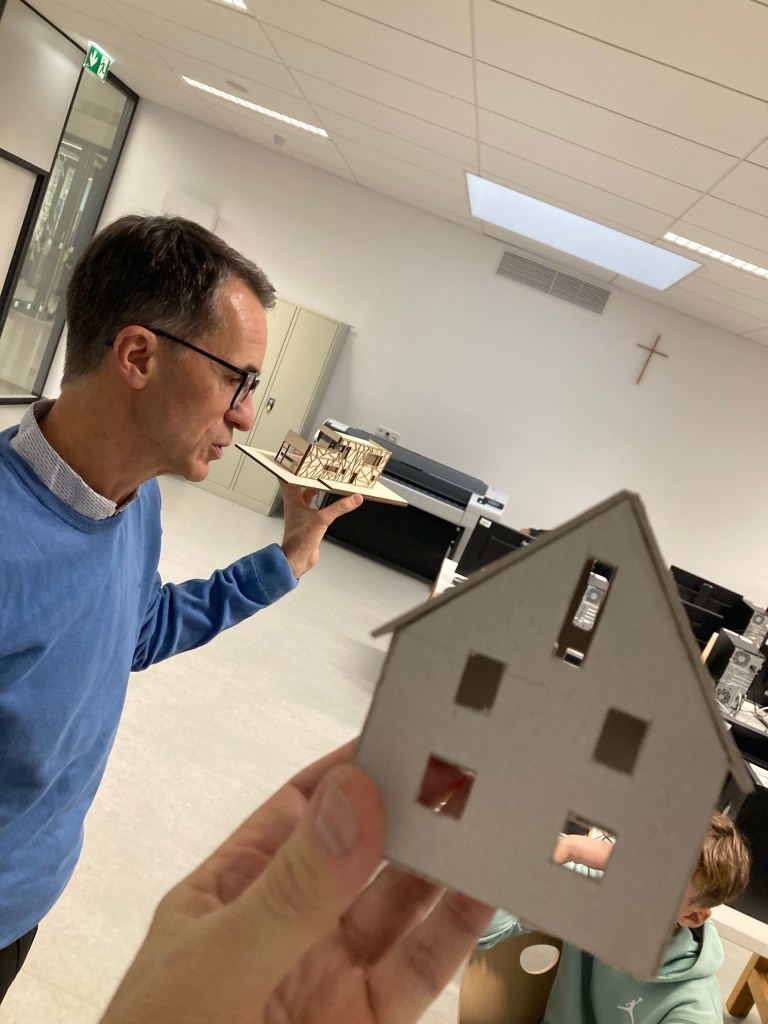 Planlesen kann nicht jede/r. Werkzeuge, die ein zukünftiges Bauwerk 3-dimensional darstellen, können hier sehr hilfreich sein. Wir probierten 3D Zeichenprogramme aus, lernten den 3D-Drucker kennen und erfuhren über Möglichkeiten, mit einer VR-Brille durch virtuelle Räume zu gehen… Beeindruckt zeigten sich Berufsberaterin Julia Bestandmann und Schulleiter Harald Klogger, die Abteilungsvorstand DI Gerhard Alberer, HTL Villach ihren Dank aussprachen.