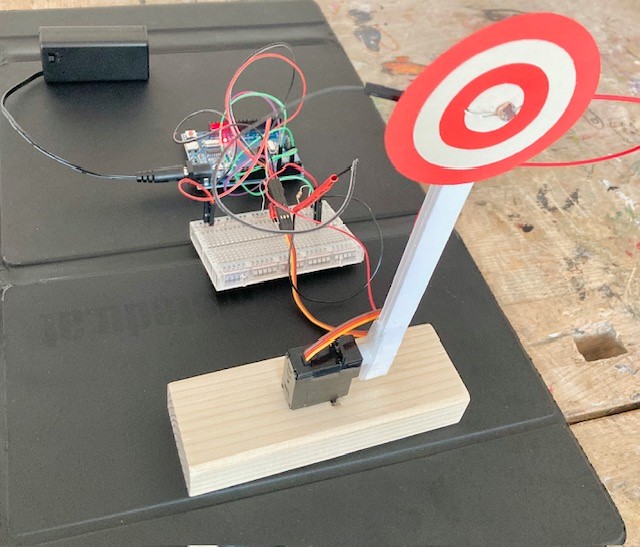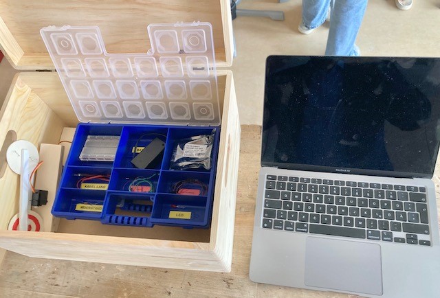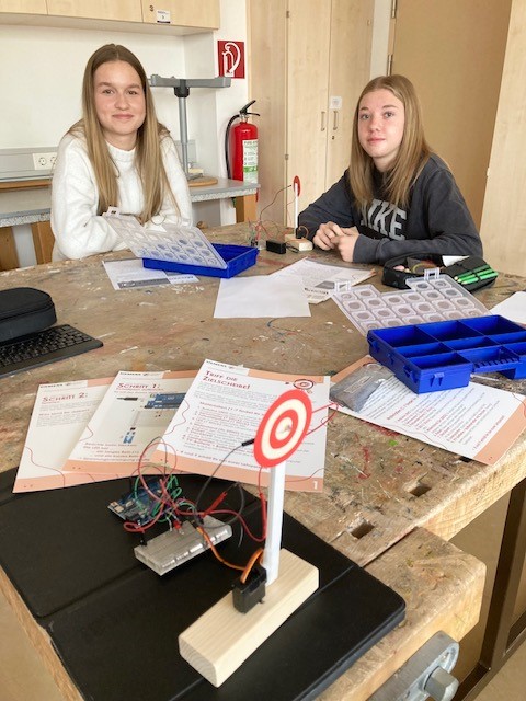 Fotos: (c) MS Friesach – Ein Unterrichtsinhalt, der sich beispielhaft fächerübergreifend (‚Technik & Desing/Werken‘ und ‚Digitale Grundbildung‘ ) verbinden lässt: einerseits geht es um die Herstellung eines praxisgerechten Gegenstandes (z.B. Signal) mit Formgebung und Design, andrerseits um die Programmierung und die Steuerung der Anlage (z.B. Lichtstrahl trifft auf Fotozelle, Signalmast kippt). Umgesetzt wurde das neulich in der 8. Schulstufe von den Kollegen SCHORN Kevin und SCHÖNFELDER Sebastian.