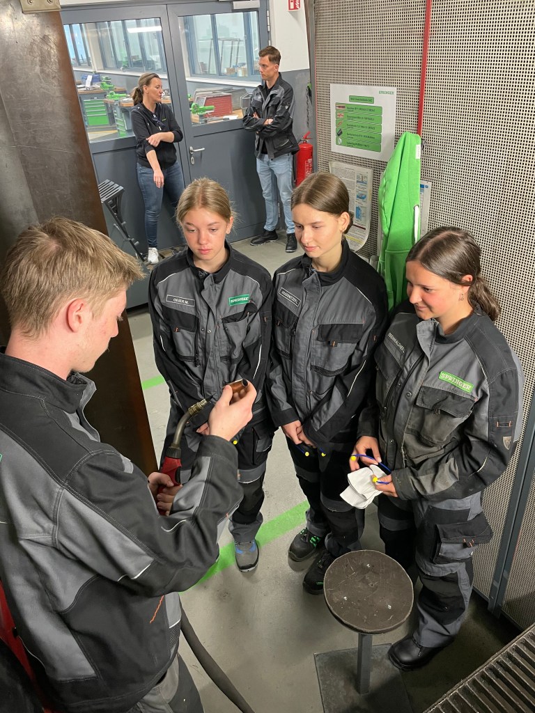 Im Mittelpunkt stand das Thema Schutzgasschweißen, das den Schülerinnen auf spannende und praxisnahe Weise nähergebracht wurde. Dabei konnten sie nicht nur zusehen, sondern auch erste Erfahrungen im Umgang mit Material und Technik sammeln.