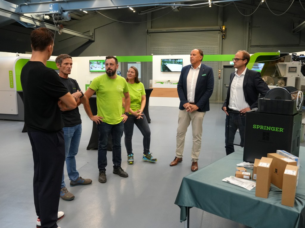 Die Übergabe des 3D-Druckers fand im September 2025 im Beisein von Manuel Seiß (CDO/CFO SPRINGER), dem Ausbildungszentrum-Team mit Helmut Liegl, Andreas Hausharter und Sabrina Bürger, sowie Schulleiter Harald Klogger statt.